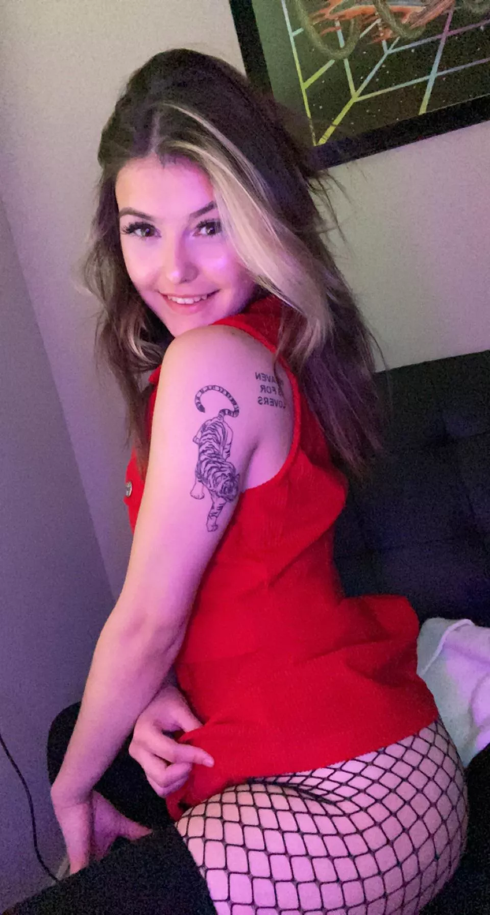 Do you like my hip cleavage with fishnets ?